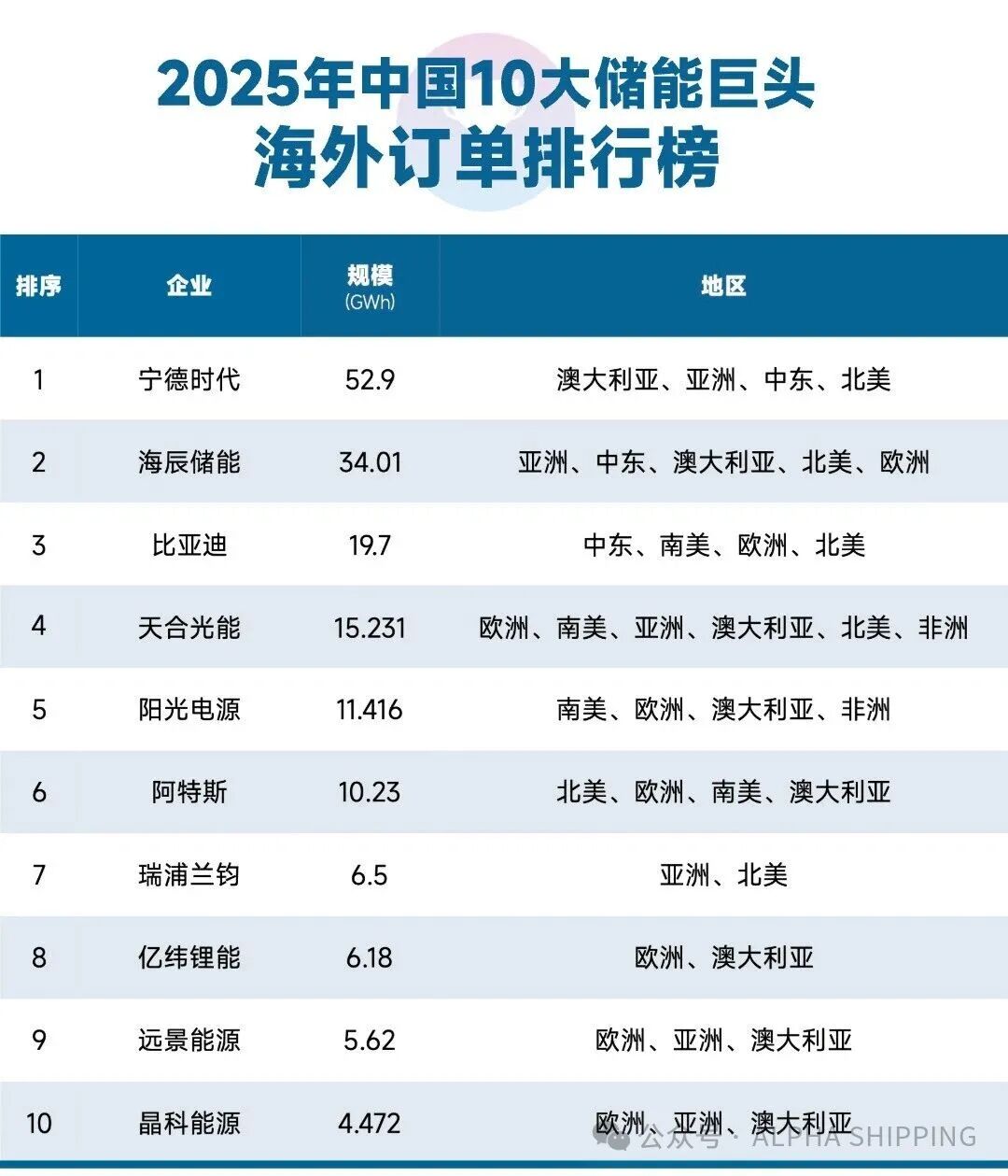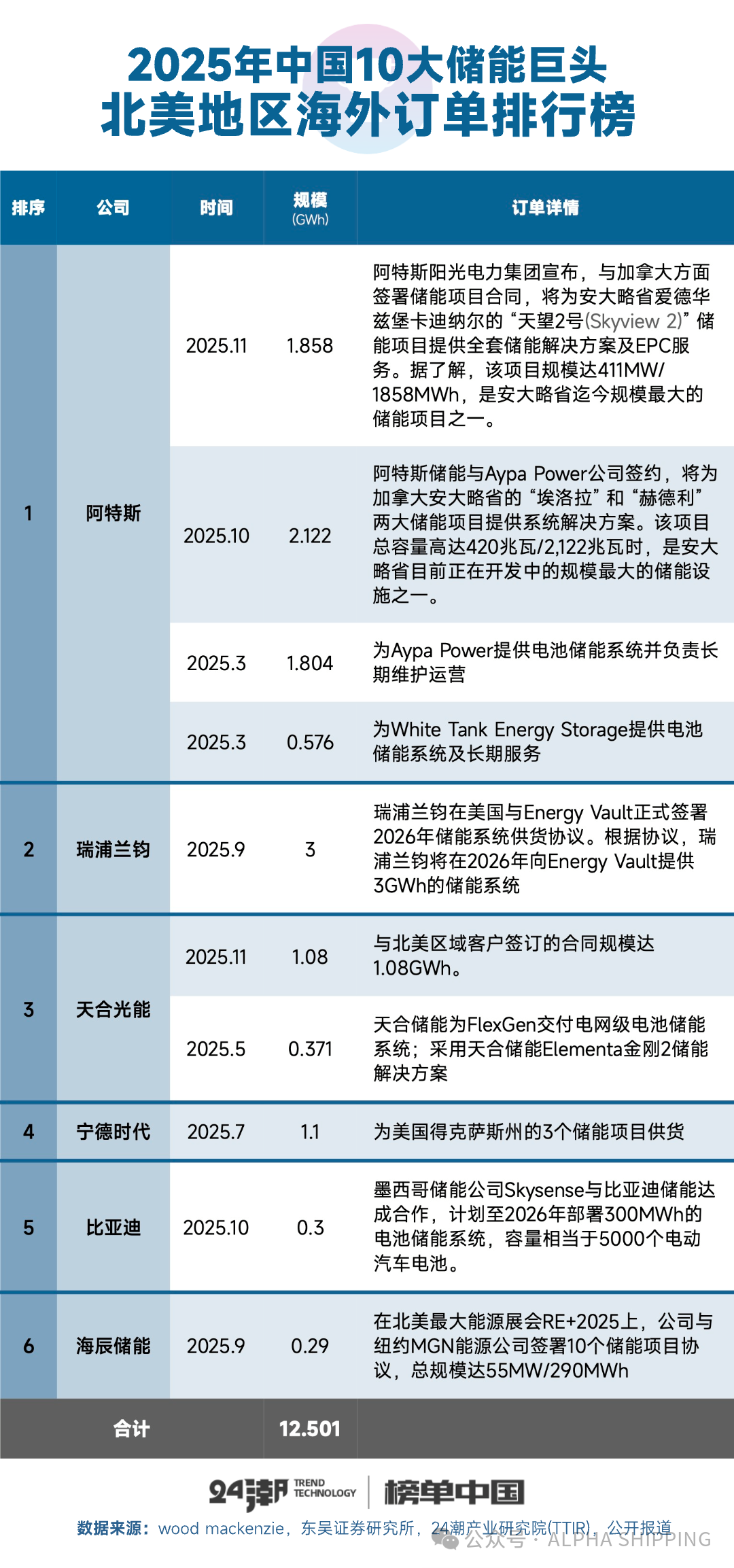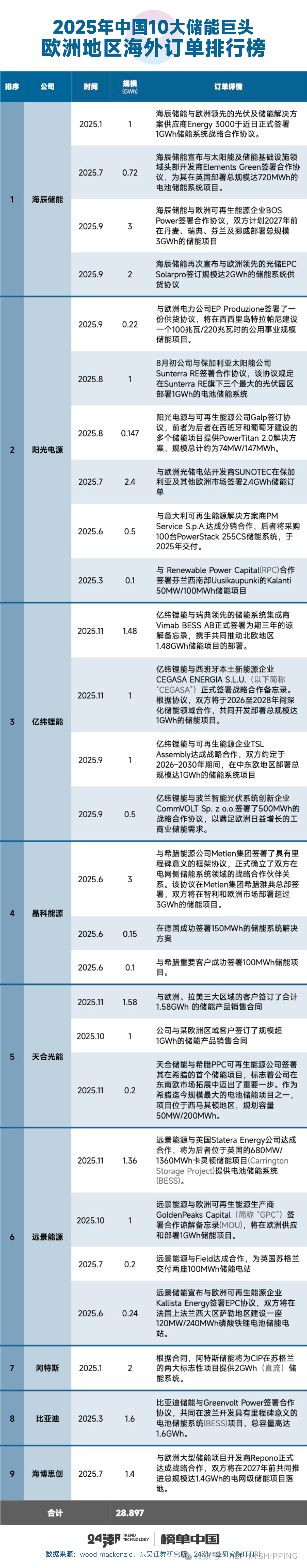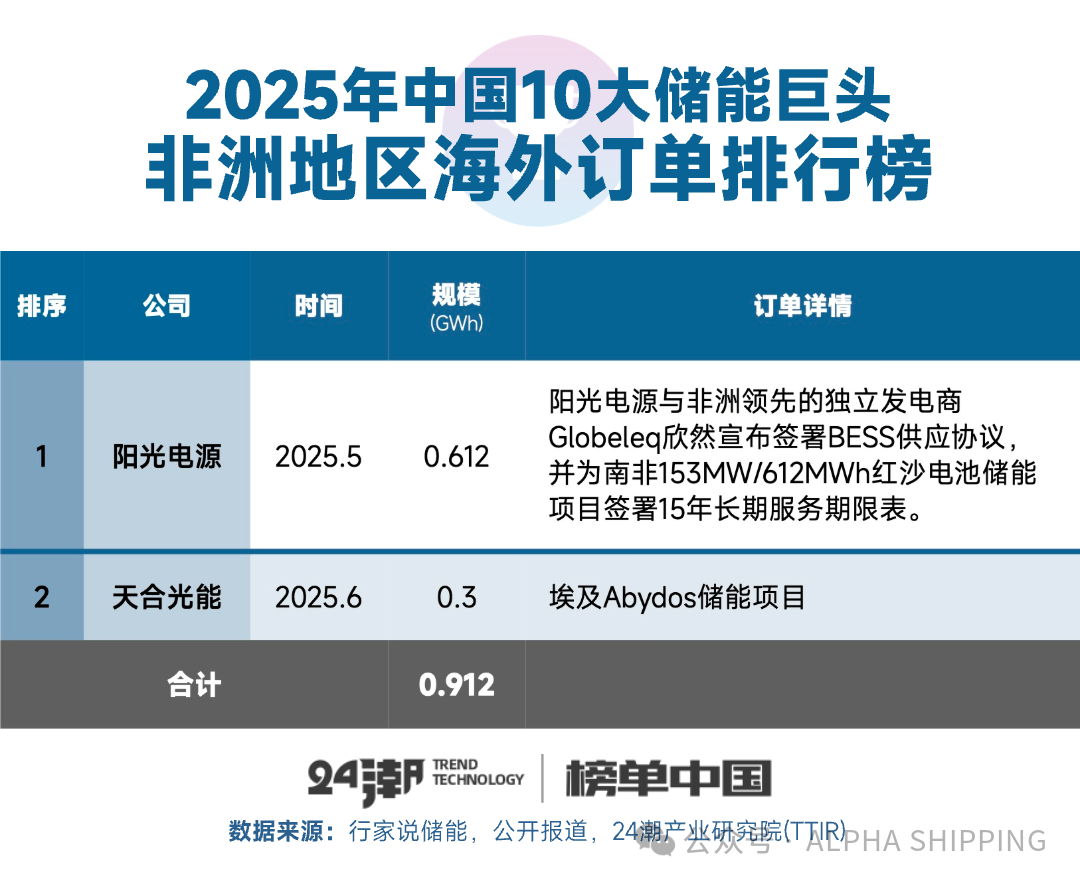 2025年中国10大储能巨头海外订单排行榜 (数据来源:24潮产业研究院(TTIR))