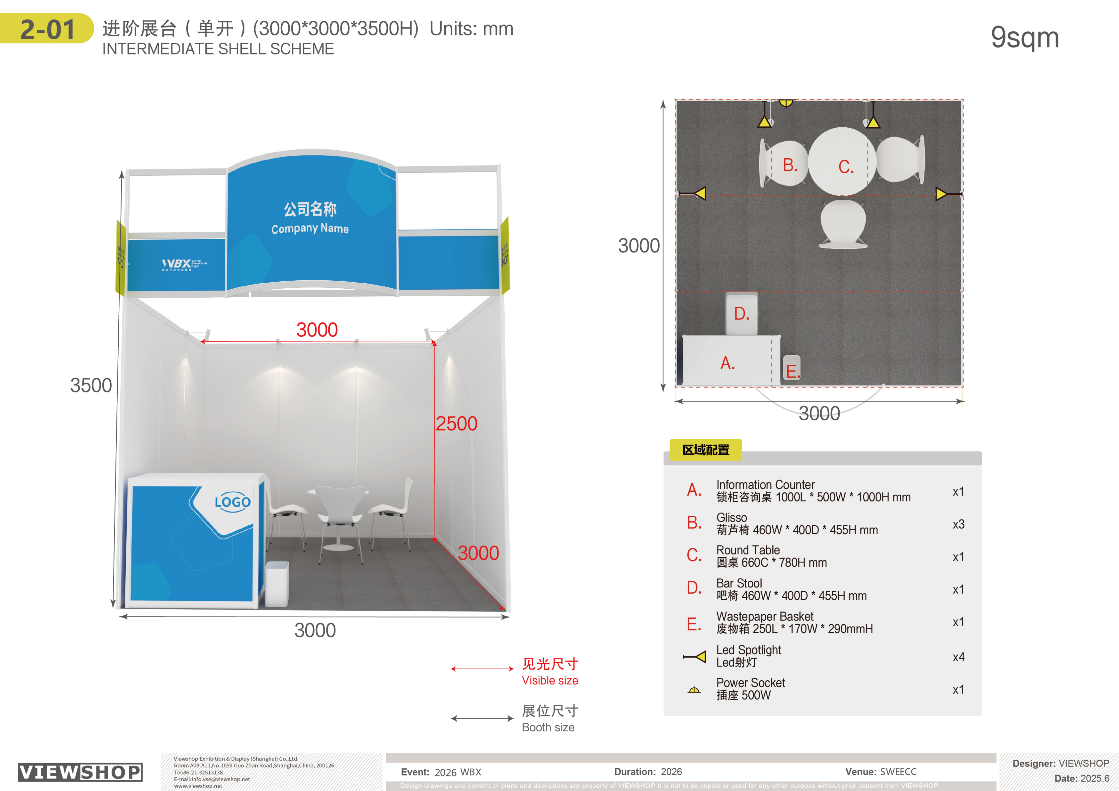 效果参考图的展位尺寸和类型:3000*3000*2500H mm(单开口)